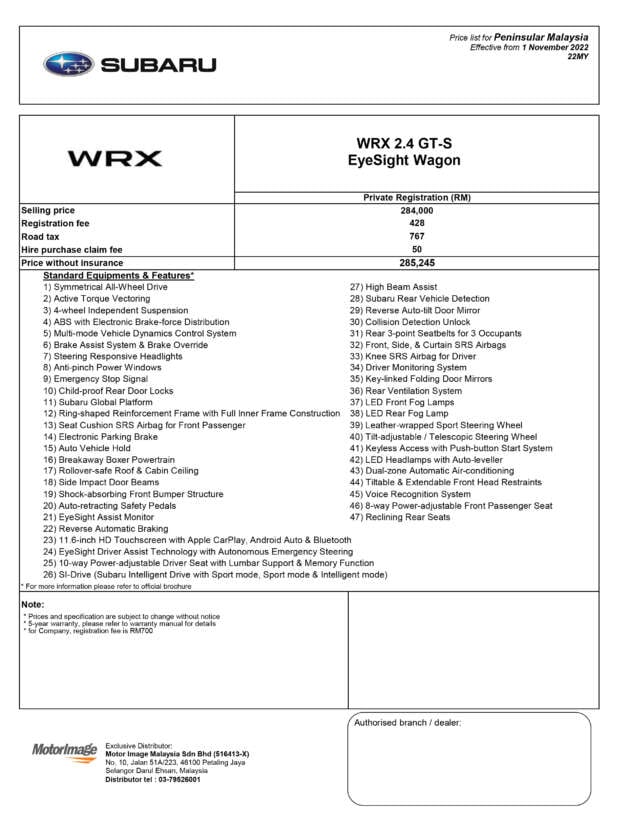 2023 Subaru WRX Wagon in Malaysia - 2.4T 275 PS, CVT, EyeSight; lower cost sedan from RM285k