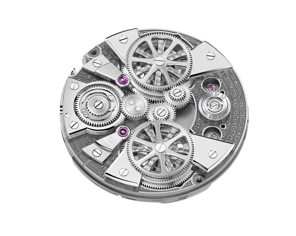 Move: Armin Strom produces Caliber ARF21, manually wound with two independent adjustment systems connected by a resonant clutch spring. Power reserve: 48 hours.