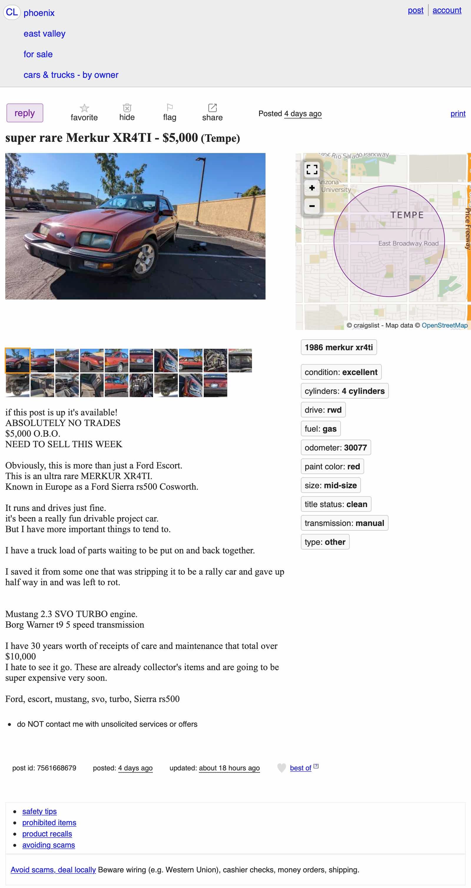 Phoenix, Arizona, Craigslistor go here if the ad disappears.