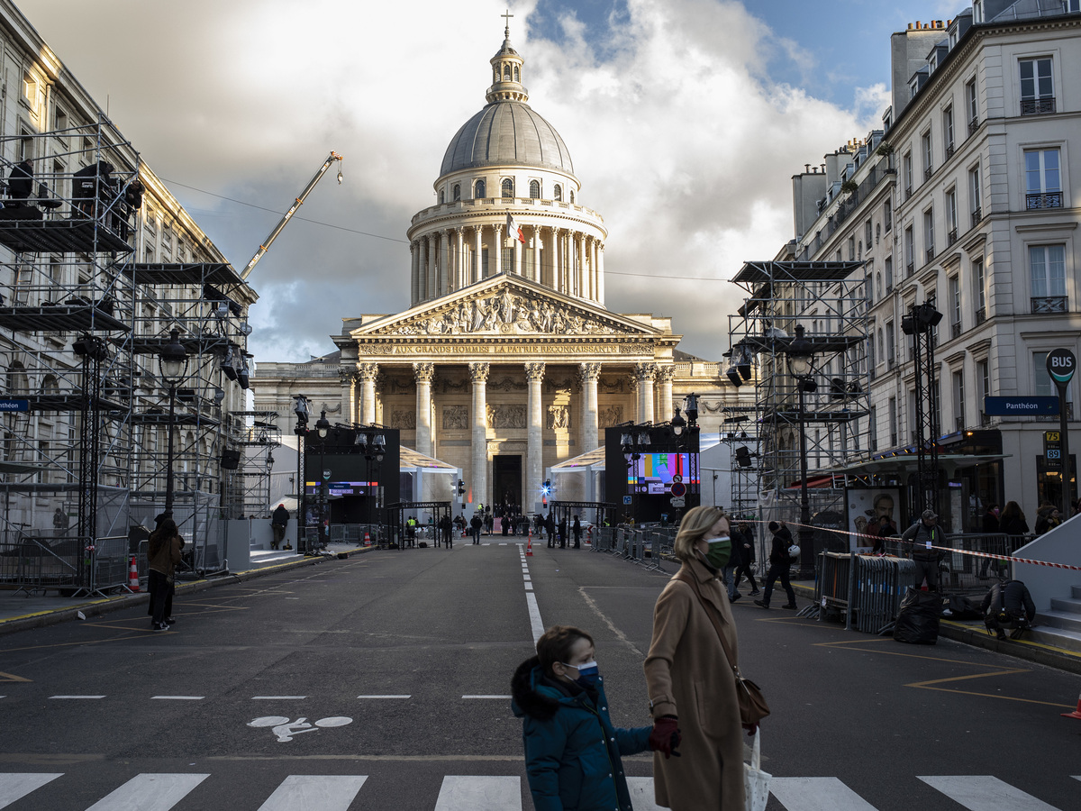 People cross a street close to the Pantheon in Paris. On Tuesday, Josephine Baker becomes the sixth woman to be commemorated in the Pantheon.